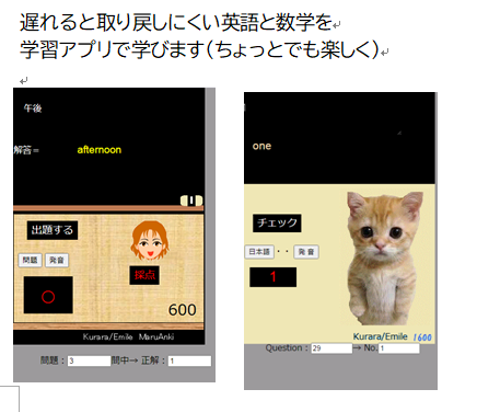 弊社では英単語・連語アプリや英作文法・英会話、歴史アプリなどをプログラミングしています。また、アプリを活用した学習セミナーの教室を開催いたしています。