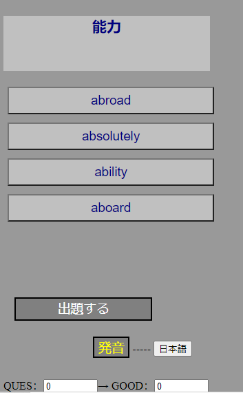 ☆操作→、クリックすると英語と意味が表示されます。ひたすらの暗記学習形式です。