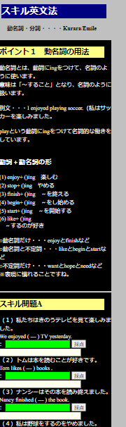 英会話力や大学入試の英語学習のための英語の文法学習です。シンプルなスキルポイントを学んだあとで、関連の問題を解いていきます。(超入門から標準まで)